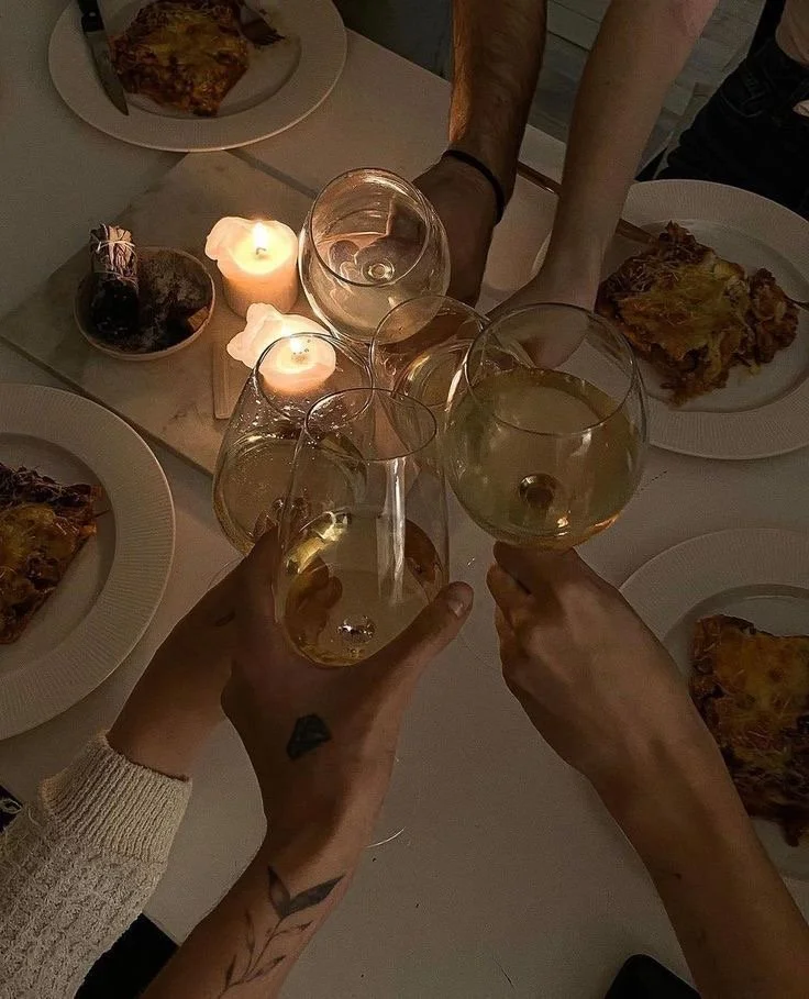 Čaka nas italijanska večerja v treh hodih, prežeta z okusi, ki prebujajo čute, ter izbrana vina, ki jih bomo okušale tudi skozi vodeno wine tasting izkušnjo v vinski kleti. Večer, namenjen užitku, povezovanju in praznovanju življenja.